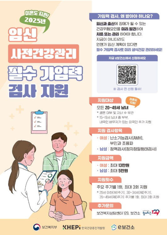 2025년부터 임신을 준비하는 모든 국민에게 큰 변화가 생겼습니다. 정부가 가임기 남녀를 위한 사전건강관리 지원을 전국으로 확대하고, 지원 범위와 횟수를 대폭 늘렸기 때문입니다.